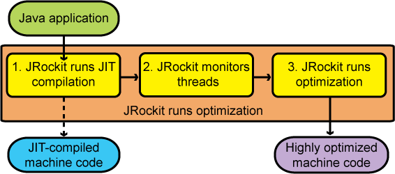 - 컴파일된 코드는 코드캐시라는곳에 올라가며, 프로그램이 멈추지 않고도 컴파일된 코드가 바로 적용 가능하다.