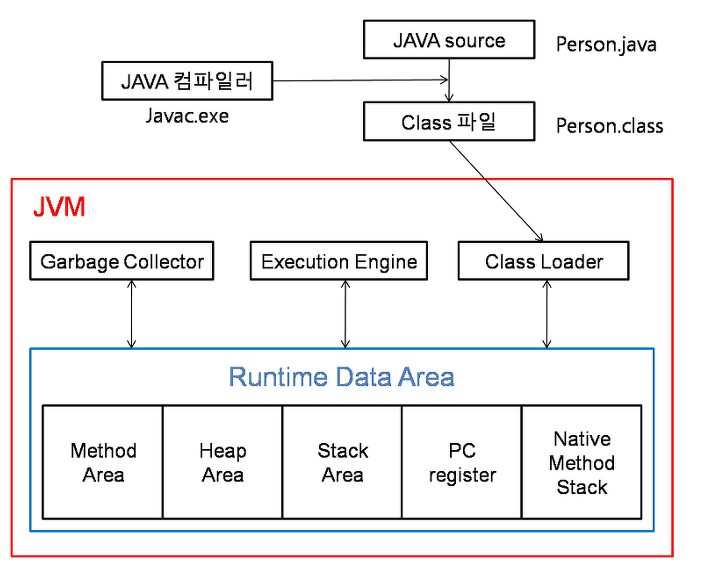 - .java 소스를 자바 컴파일러가 컴파일하면 person.classs 같은 .class(바이트 코드)가 생성된다.