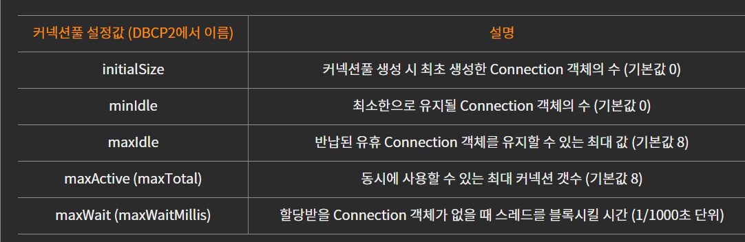 java.sql.Connection DBCP 커넥션 풀 설정 예시