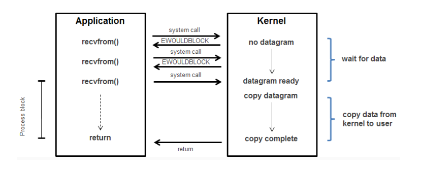 2. 데이터가 입력됐든 안됬는 요청하는 그 순간, 바로 결과가 반환된다. (데이터가 없다면 없다는 결과 메시지 EWOULDBLOCK) 반환