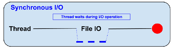 - I/O 작업이 진행되는 동안 유저 프로세스는 자신의 작업을 중단한 채 대기하는 방식이다.