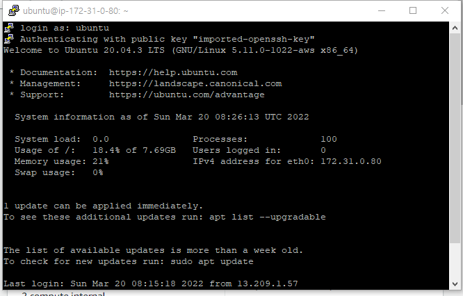 ec2 ubunutu 프리티어를 설치하였다(자세한 내용은 생략..)