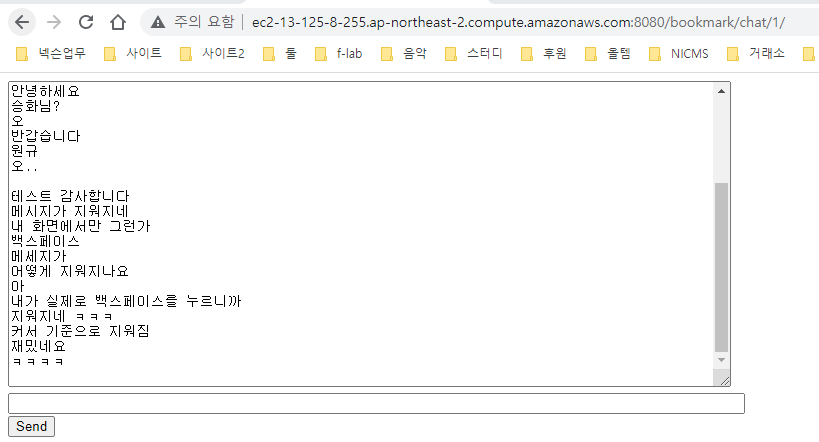 apt-get install redis-server 명령어로 redis-server를 설치하니 채팅이 잘되었다.