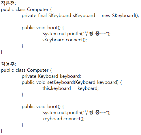 외부에서 키보드 객체를 주입해 주기만 하면 되는 것이다.